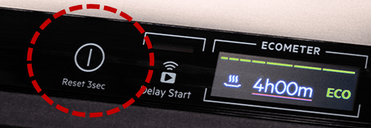 On a control panel like this to reset the appliance, press and hold the On/Off button on the appliance for 3 seconds. This will reset the appliance and clear any previously set programmes.